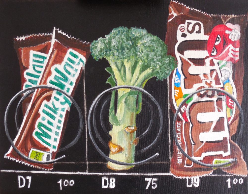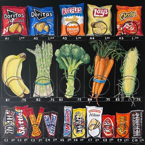 - Food Choices, Oil and acrylic on canvas, 36 x 36 inches
