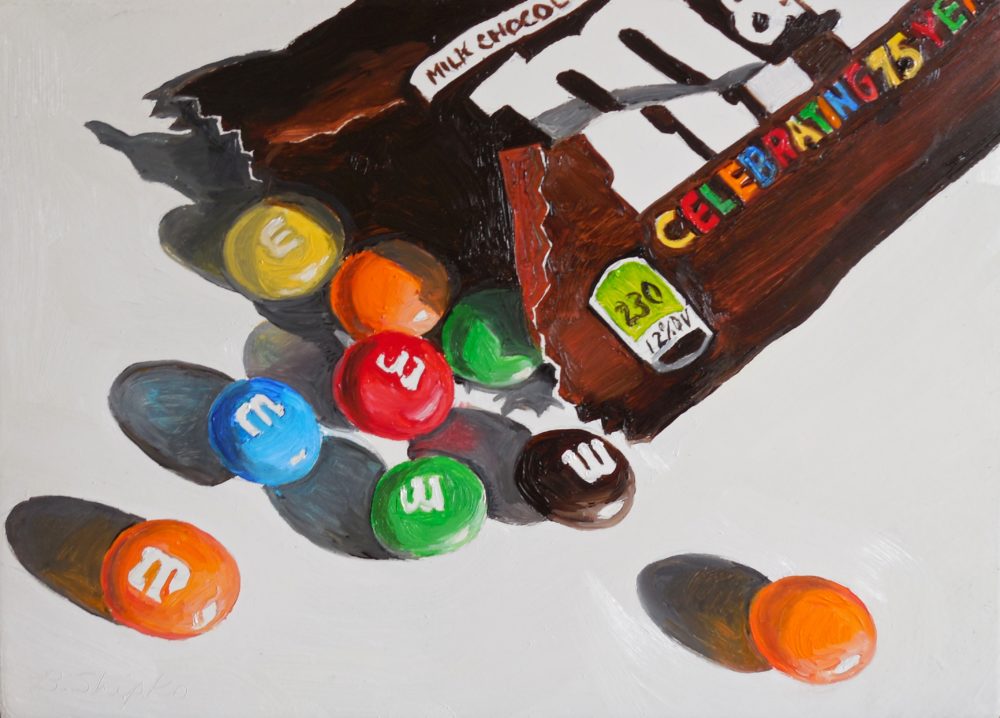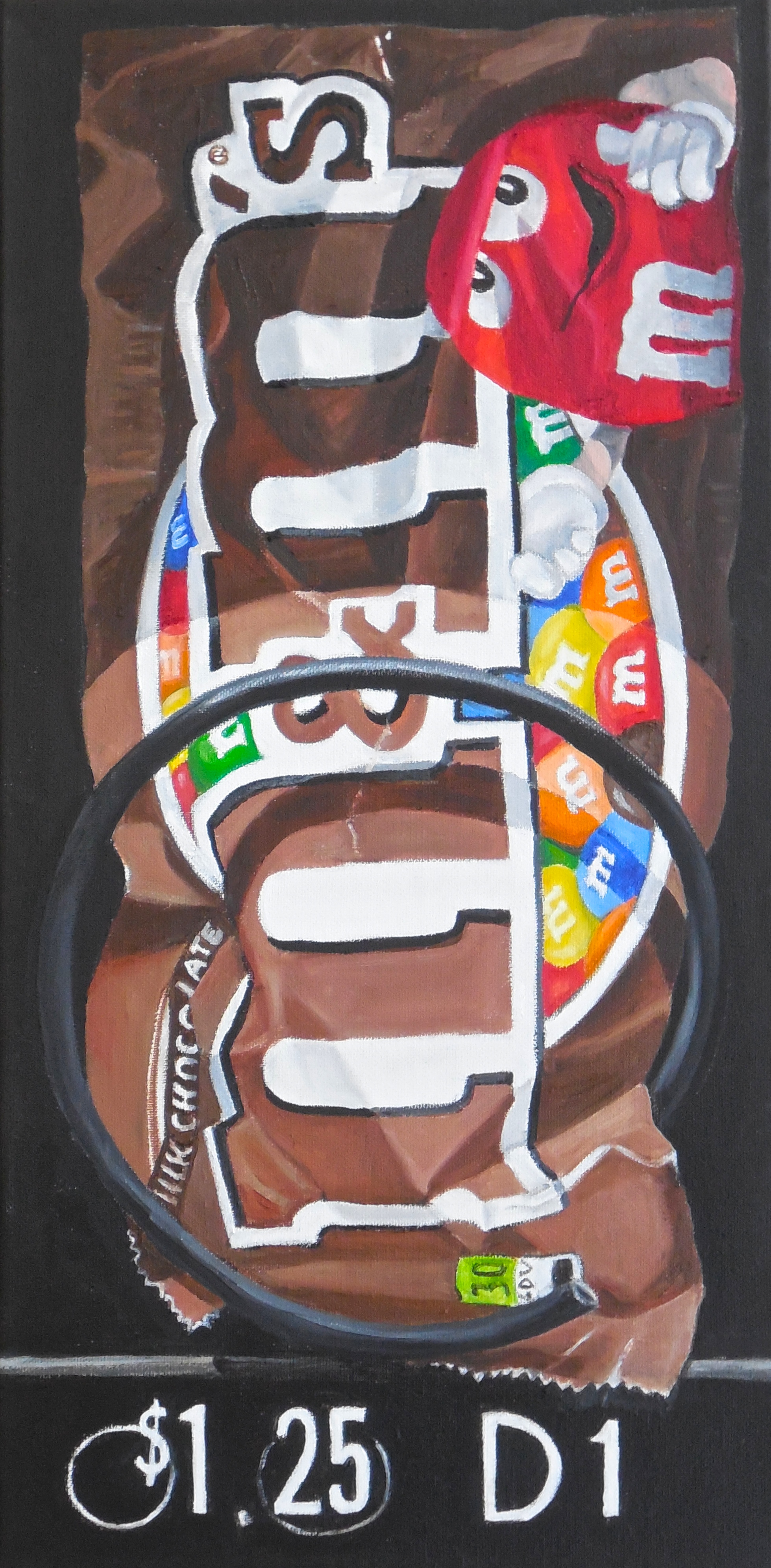 - M&Ms, Oil and acrylic on canvas, 20 x 10 inches