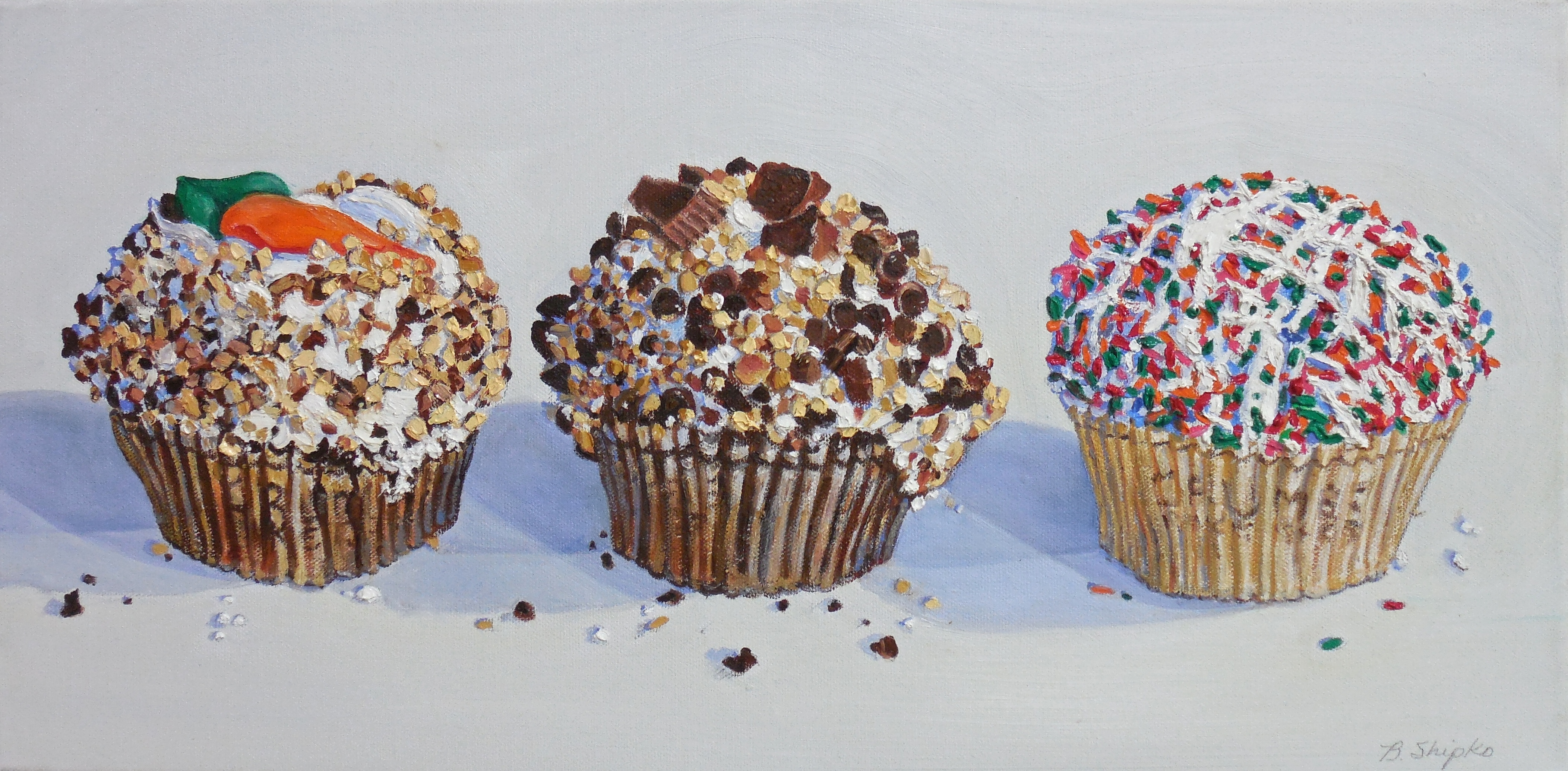 - Crumbs Cupcakes, Oil on canvas, 10 x 20 inches, SOLD