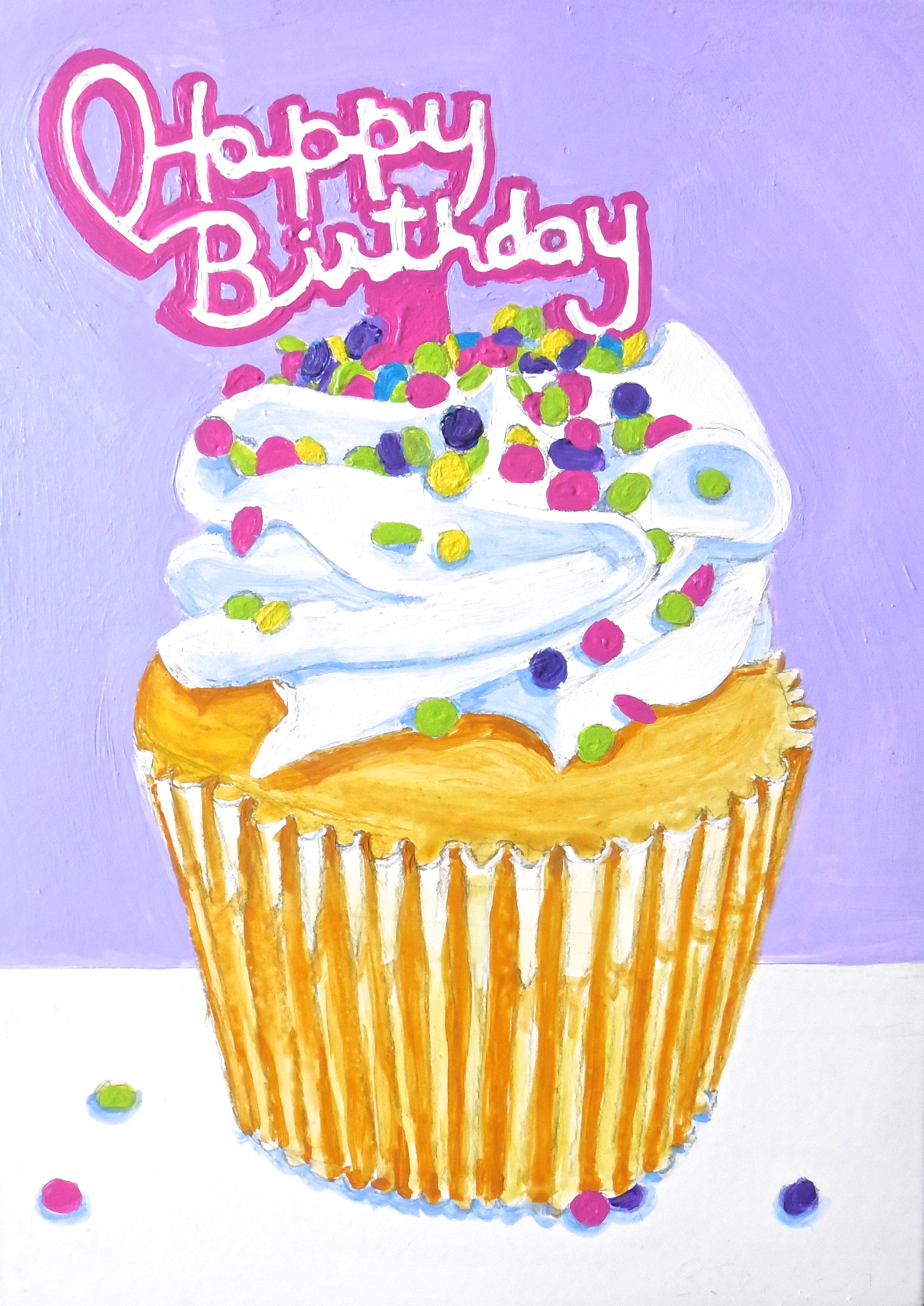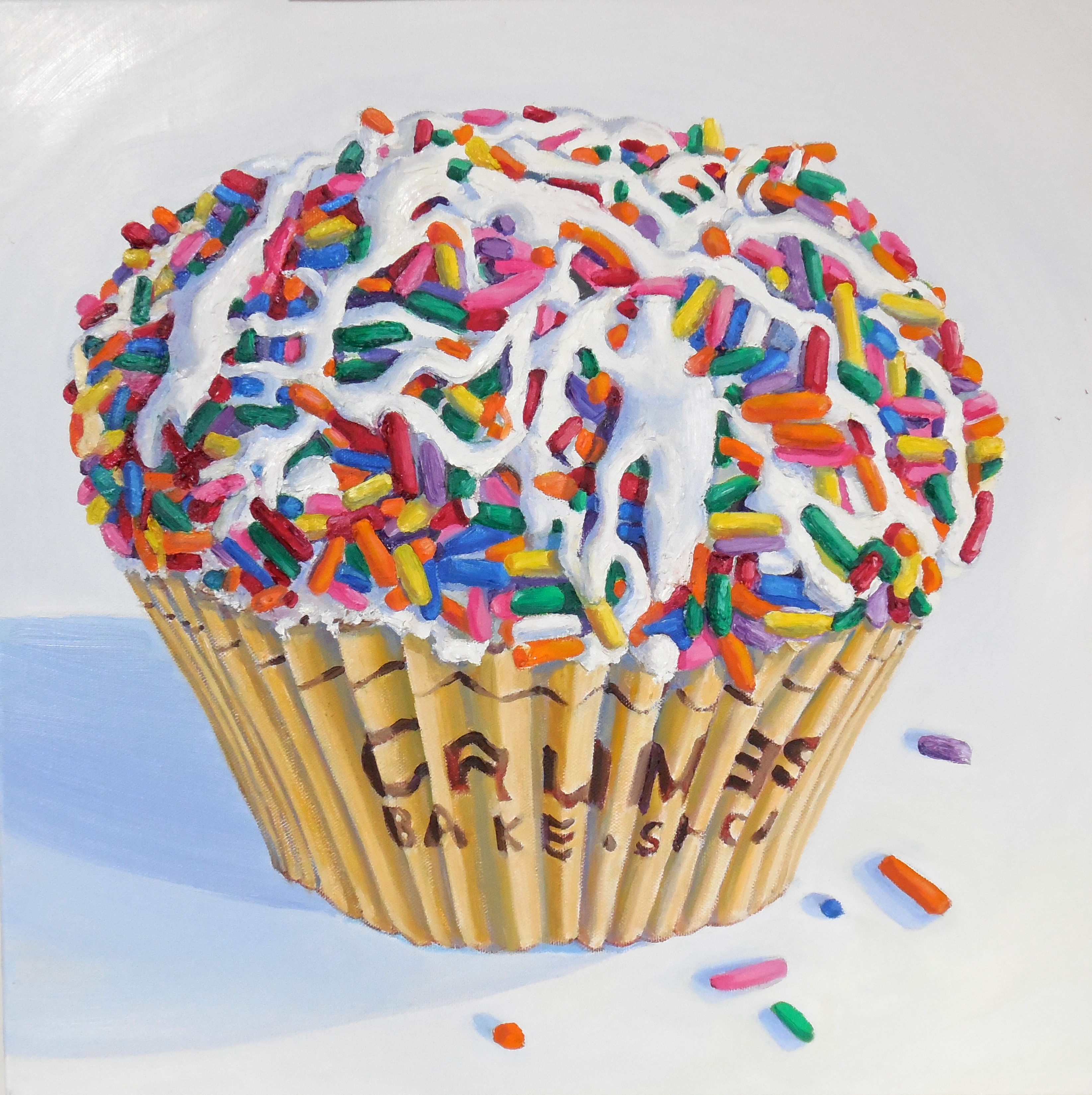 - Crumbs Good Guy Cupcake, Oil on canvas, 16 x 16 inches, Not available