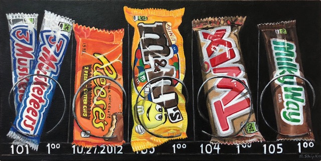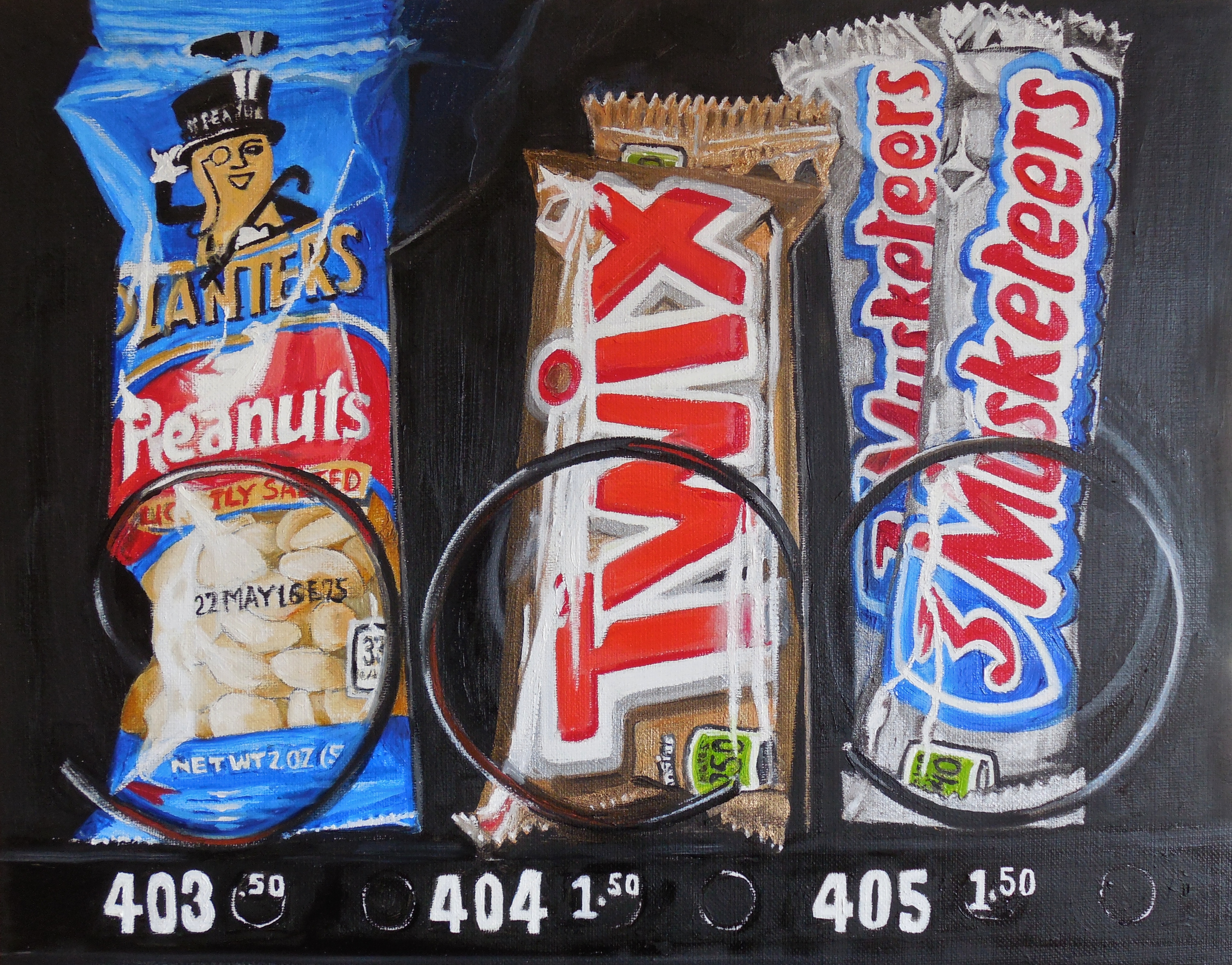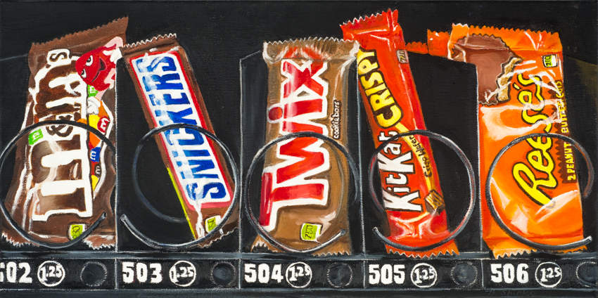 - America’s Favorite Candies – Icons of the Vending Candy World Series, Oil and acrylic on canvas, 10 x 20 inches