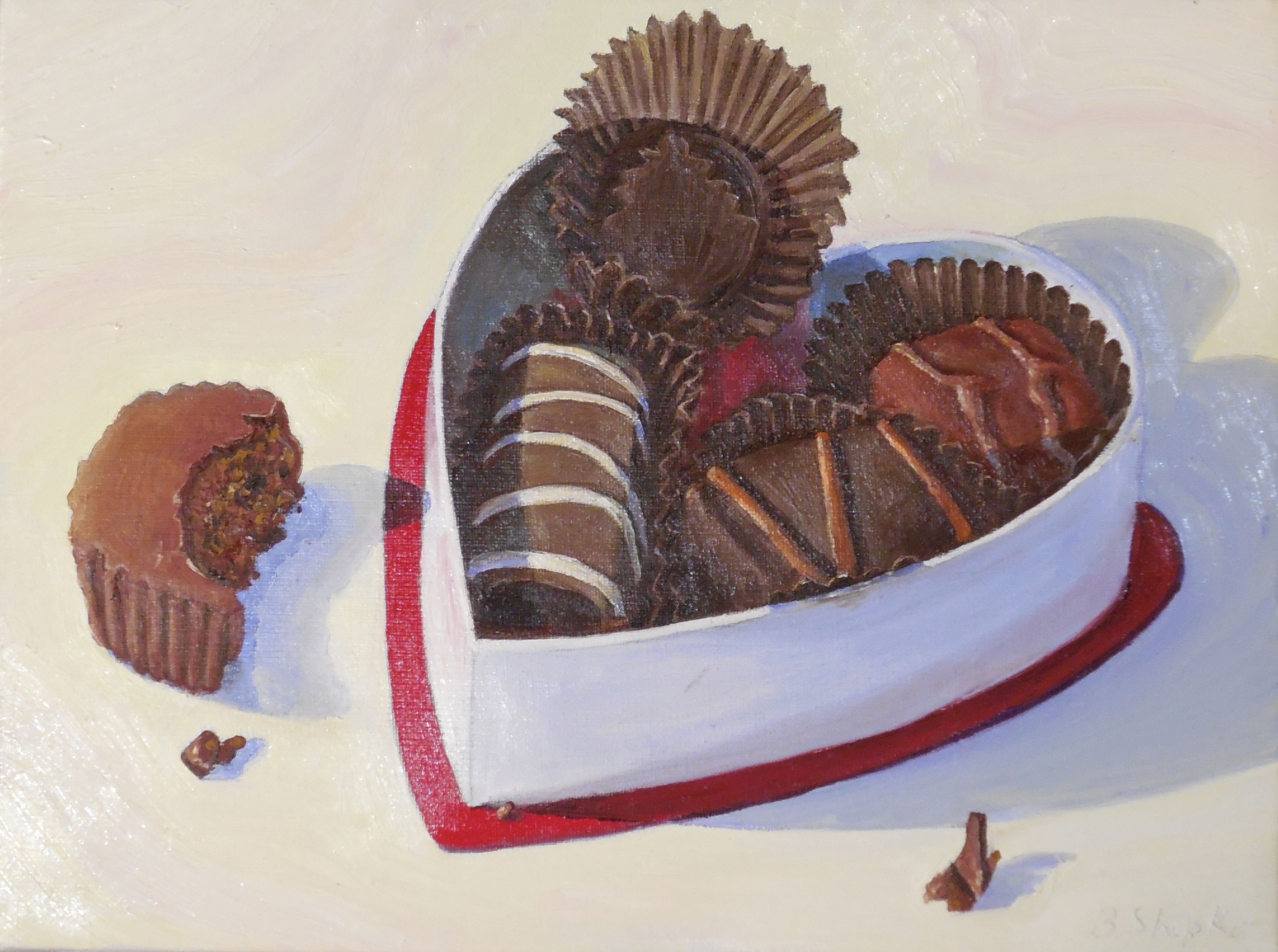 - Heart Shaped Box of Chocolates, Oil on canvas, 9 x 12 inches, SOLD