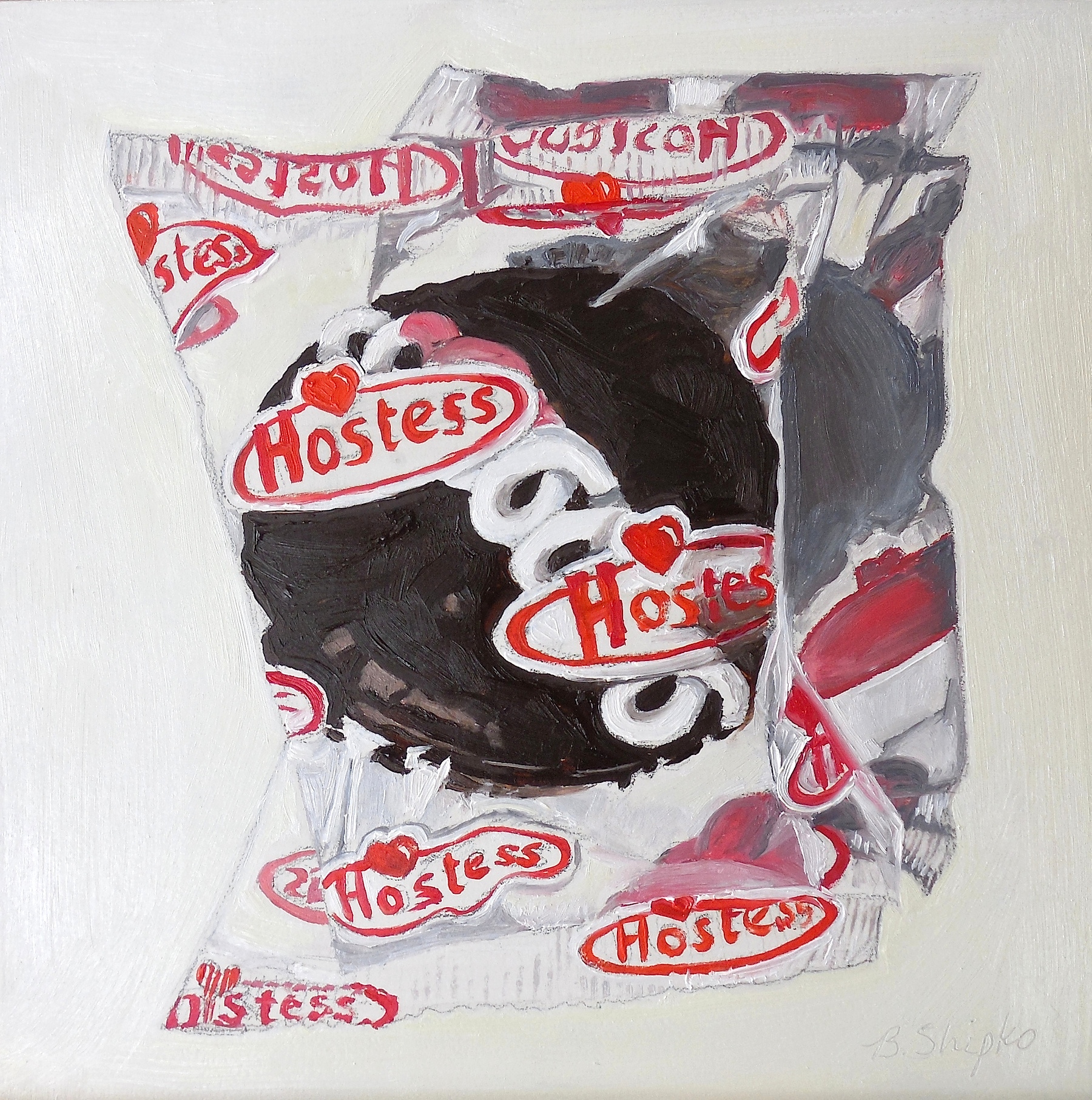 - Hostess Cupcake in Wrapper, Oil on panel, 6 x 6 inches