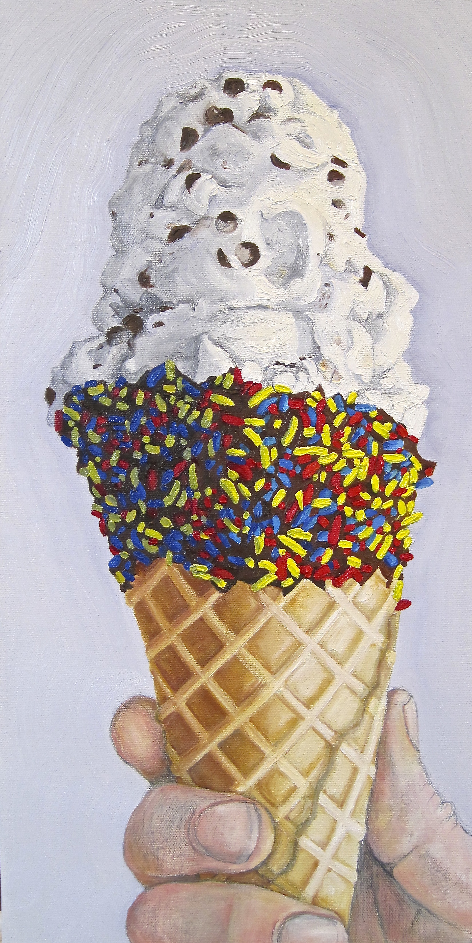 - Jay’s Ice Cream Cone, Oil on canvas, 20 x 10 inches