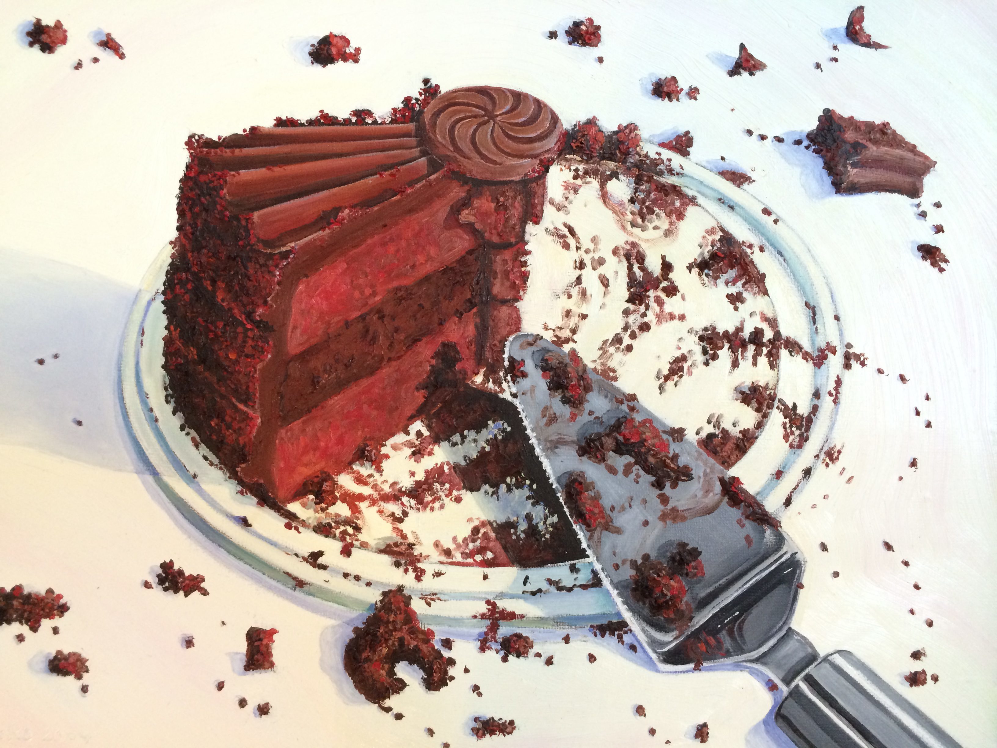 - Last Piece – Red Velvet Chocolate Cake, Oil on canvas, 16 x 20 inches, SOLD.