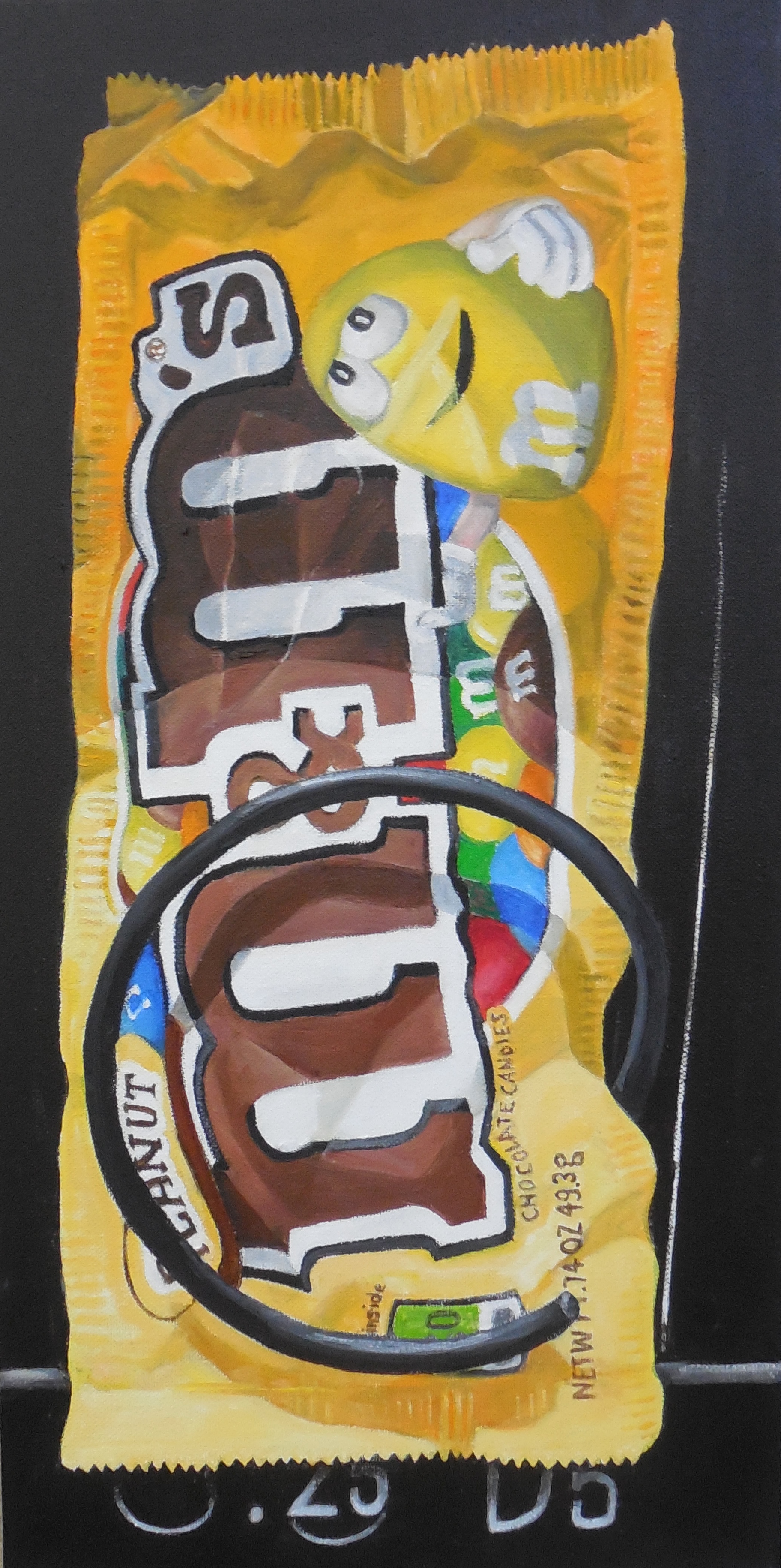 - M&Ms Peanut, Oil and acrylic on canvas, 20 x 10 inches