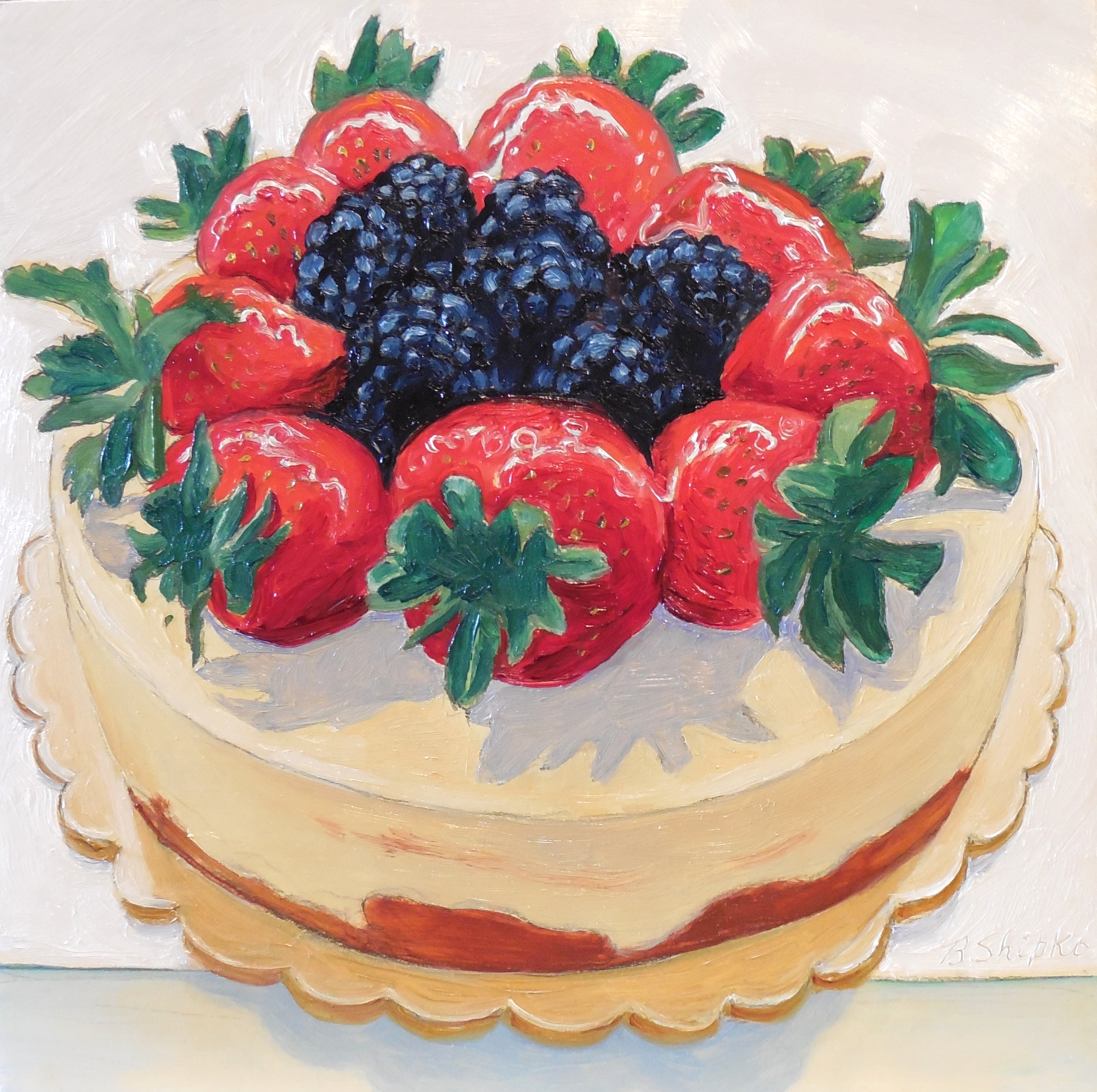 - Strawberry Blackberry Cheesecake, Oil on wood panel, 6 x 6 inches