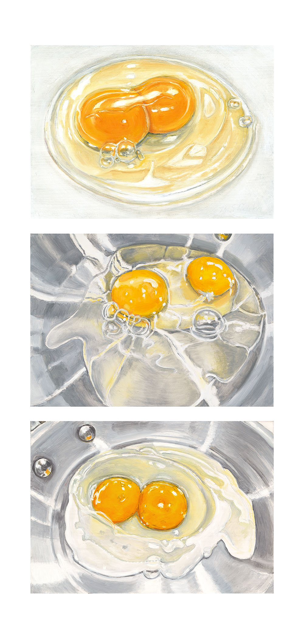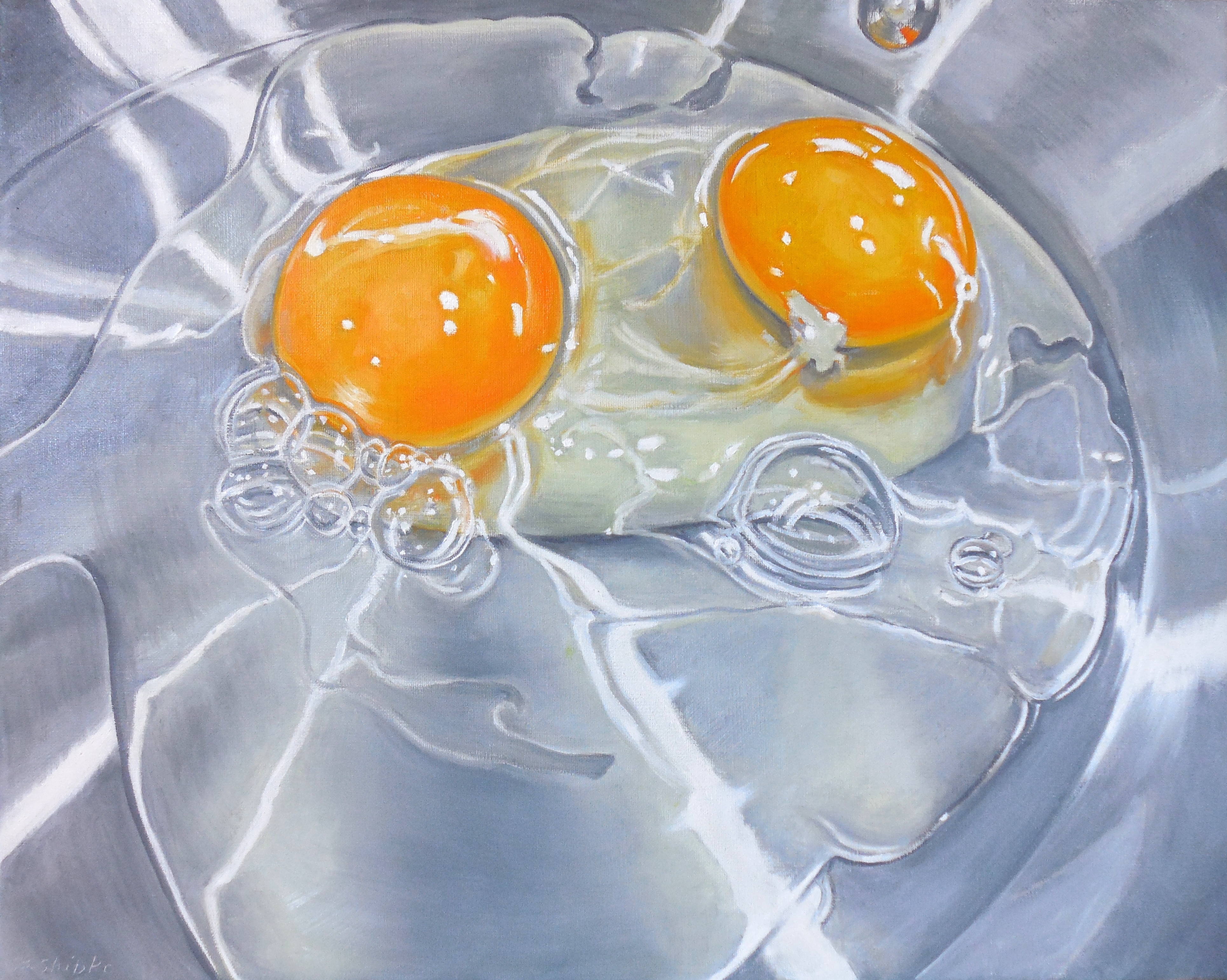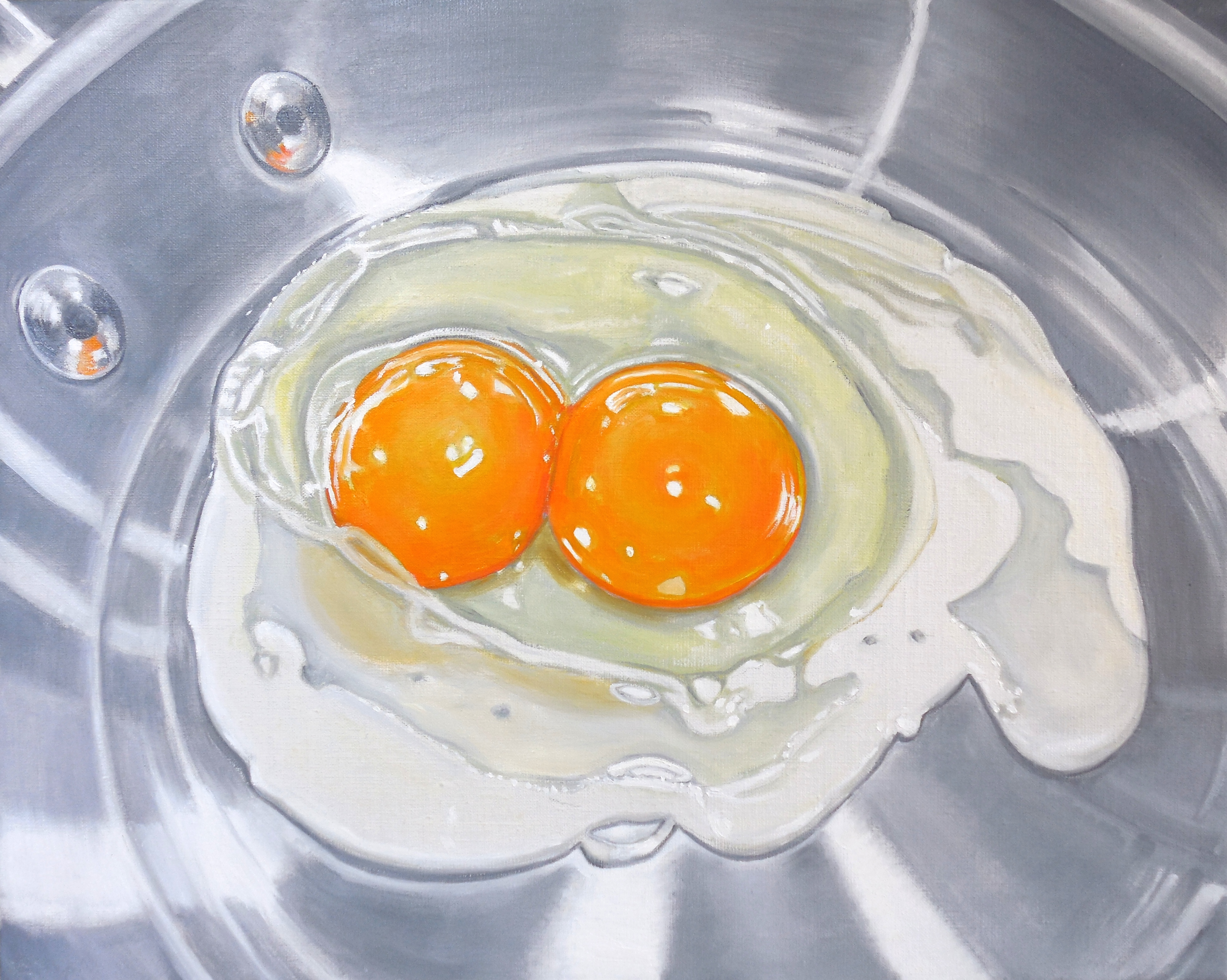 - Raw Double Yolk Egg in Pan, Oil on linen. 16 x 20 inches