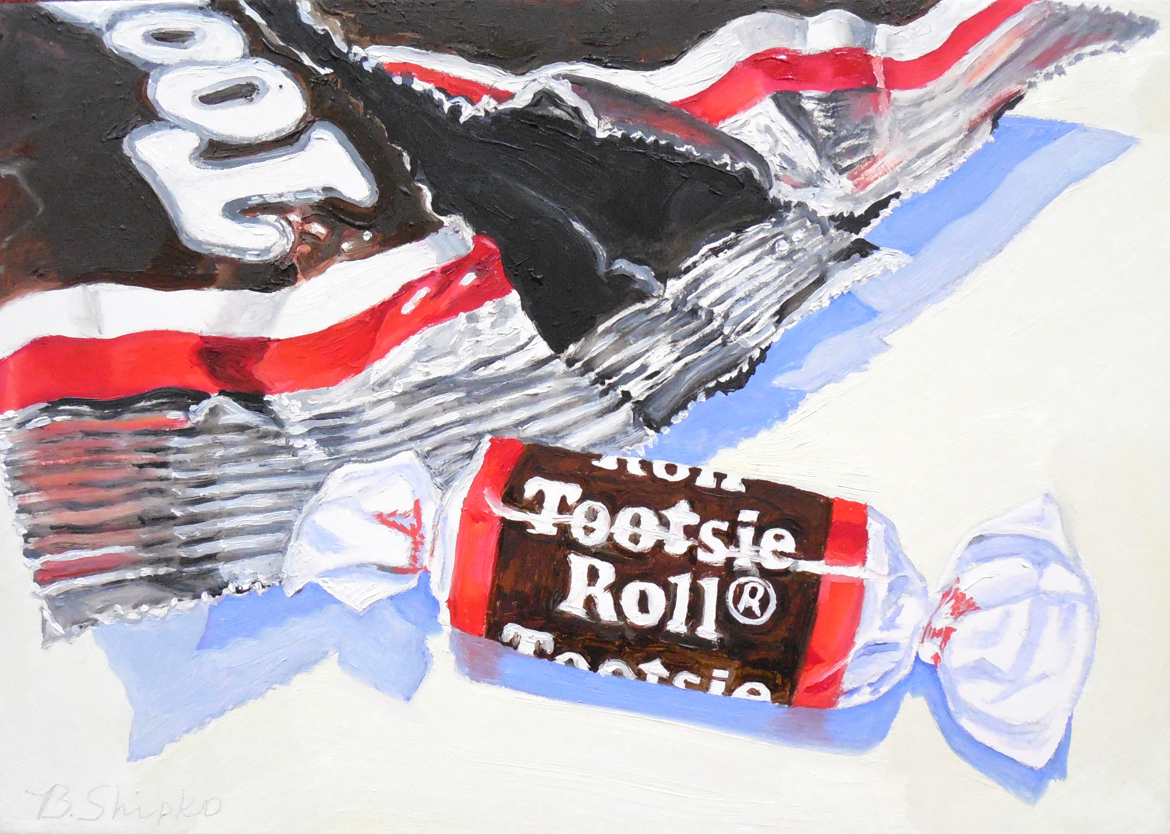 - Tootsie Roll and Bag, Oil on panel, 5 x 7 inches, SOLD
