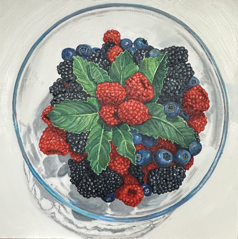 - Strawberry Blueberry Kiwi Tart, Oil on canvas, 30 x 30 inches, SOLD