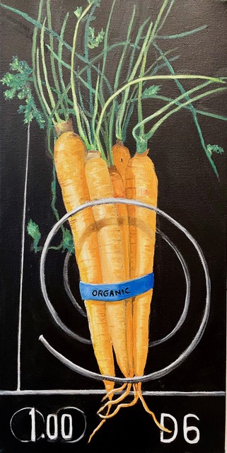 - Carrots, Oil and acrylic on canvas, 20 x 10 inches